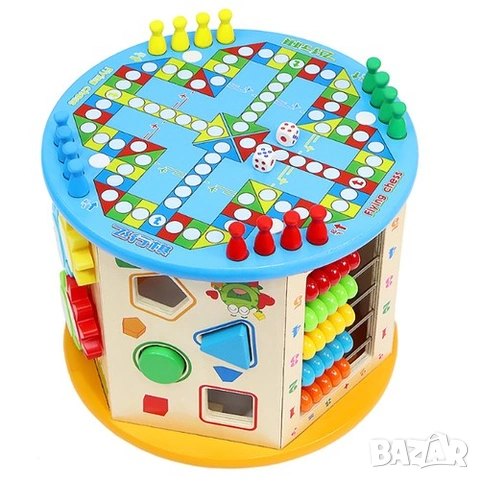 • 8в1 интерактивен дървен куб с много занимателни игри