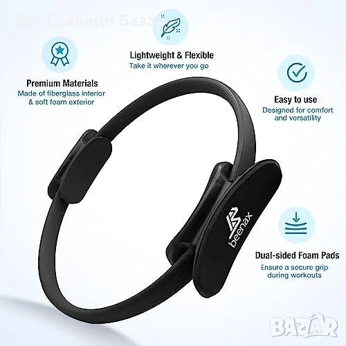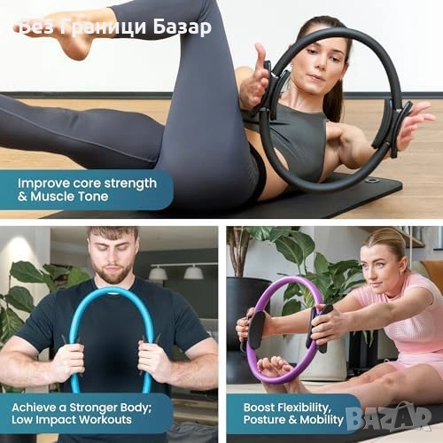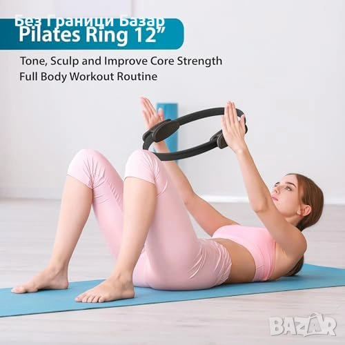 Комплект за пилатес с пръстен 12” (Magic Circle) с двойни подплатени дръжки за стабилен и удобен захват