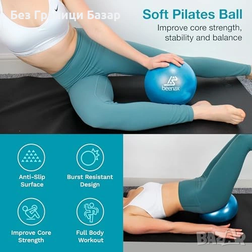 Включва мека мини топка 9” от PVC (антислип, устойчива на спукване) за баланс и стабилност