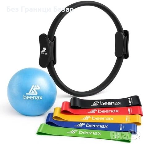 Нов Пилатес сет: пръстен 12”, топка 9”, ластици 5 съпротивления за спорт