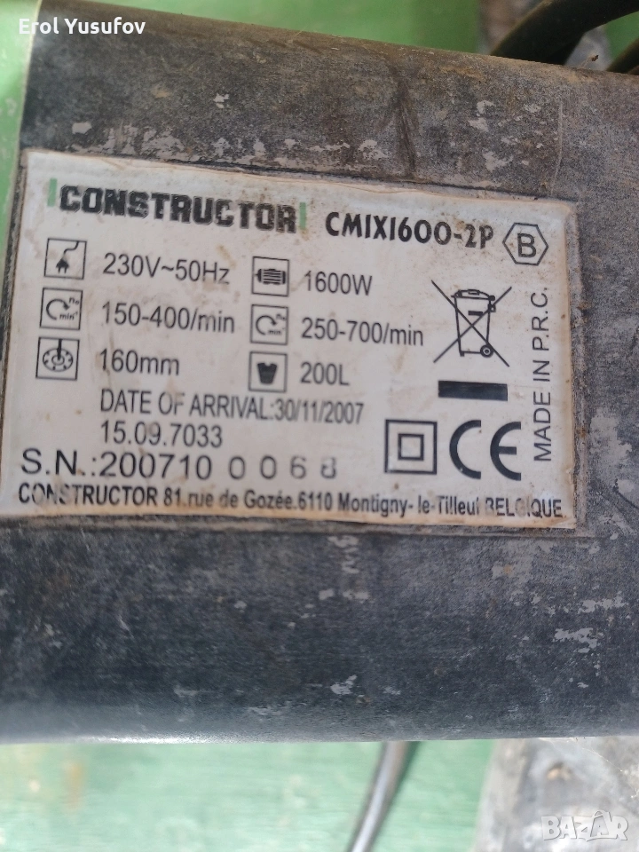 Constructor Миксер за ремонт или части има проблеми с ротора не работи редуктора е здрав изпращам с опция тест и преглед цена 15 евро