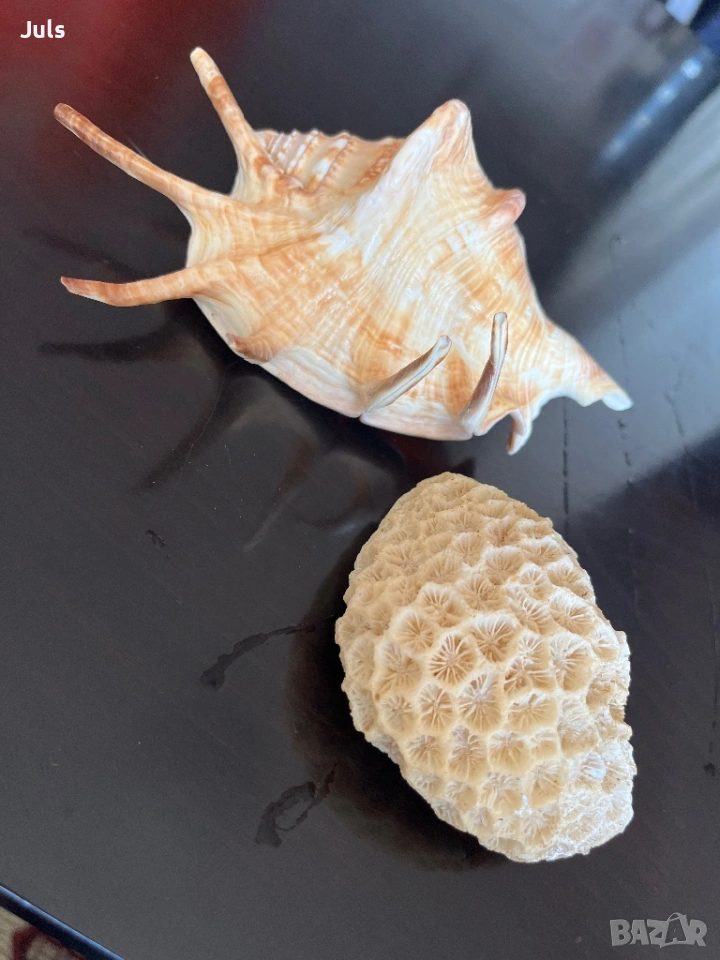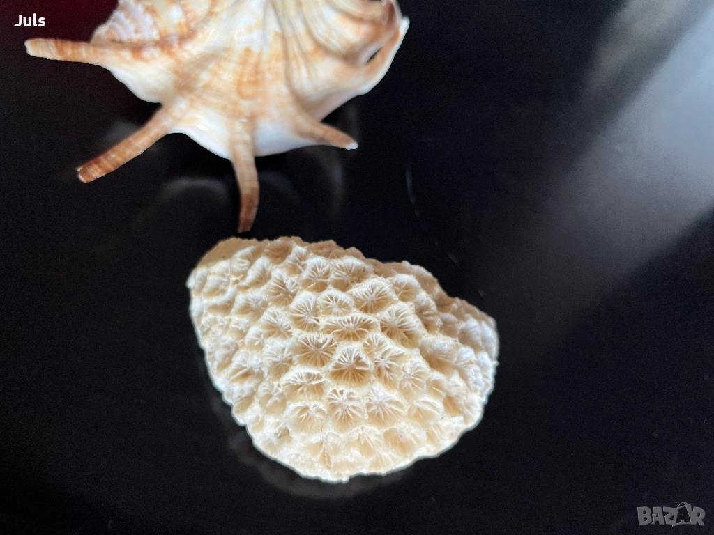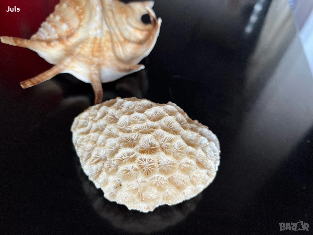 В комплект с естествен каменист корал с характерна структура и релеф, подходящ за интериорна декорация, морски стил, витрина или колекционерска стойност.