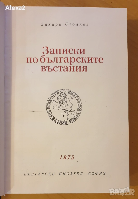" Записки по българските въстания " - Захари Стоянов, 1975г., 939 стр., твърди корици и хартиена подвързия, перфектно състояние - като нова.