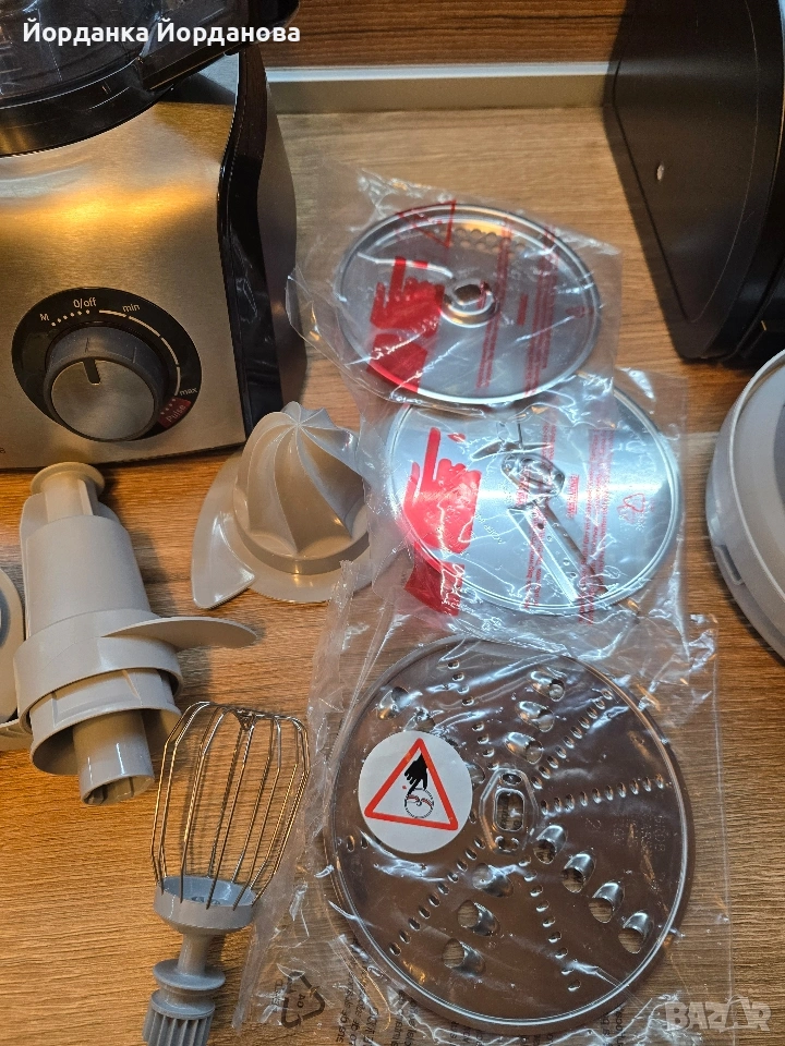 Кухненския робот е използван 2 пъти, всички аксесоари са без забележка. Няма никакви следи от употреба.