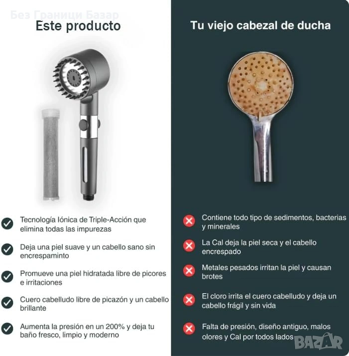 Нова Душ слушалка с филтър против замърсители дъжд/масаж SPA ефект