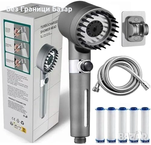 Филтрираща душ слушалка в черен цвят с включен душ комплект