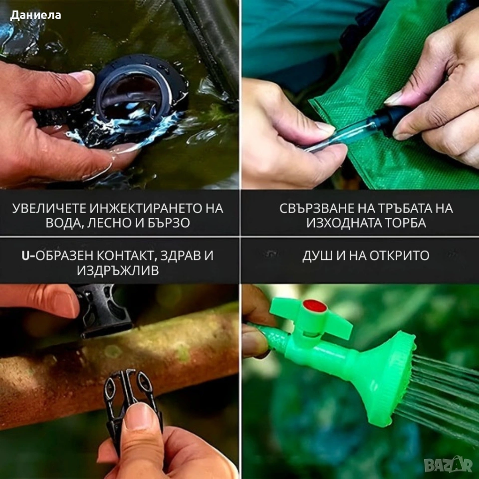 Вместимост: 20 литра Дебит на водата: 3–4 л/мин — подходящ за ефективно изплакване и къпане Дължина на тръбата: 180 см — комфорт при използване Капацитет на батерията: 5200 mAh (за модели с допълнително електрическо загряване или индикатори) Напрежение: 3.7 V Компоненти: спирателен клапан, маркуч, душ-распръсквач и уплътнения, устойчиви на износване !!Доставка до две седмици, след като направите вашата поръчка!!