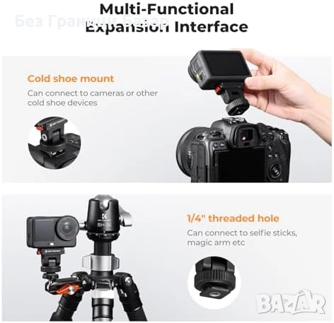 Cold shoe слот за монтаж върху hot shoe/cage cold shoe и други съвместими платформи