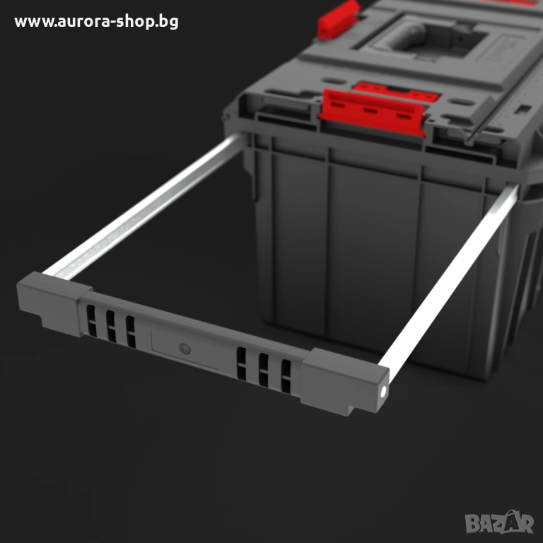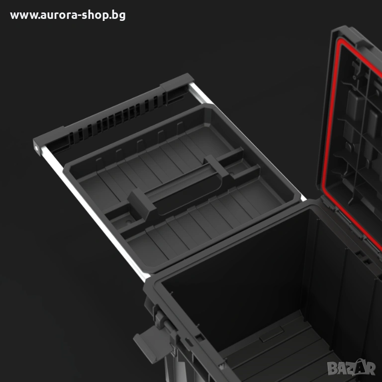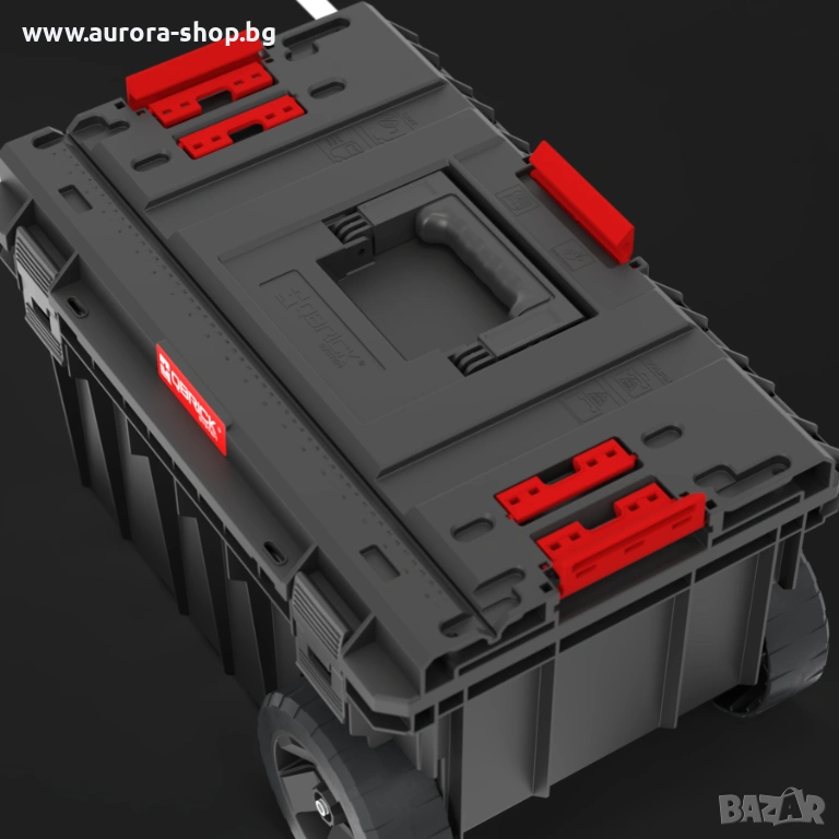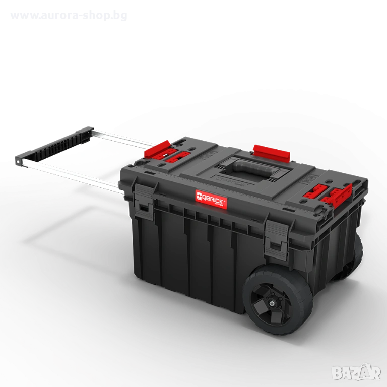 Куфар за инструменти на колела, осигуряващ отлична мобилност на модулните системи Qbrick System ONE. Оборудван е с две устойчиви колела, монтирани на метална ос, което гарантира безопасно транспортиране на свързани кутии и органайзери. Телескопичната алуминиева дръжка, изтегляща се странично, осигурява удобен достъп до вътрешността и комфорт при пренасяне на свързани модули чрез здравите полиамидни конектори. Механизмът на двойната телескопична дръжка се заключва лесно с леко натискане отдолу. Вътрешното пространство включва практична тава и гъвкаво уплътнение за защита от прах и вода.