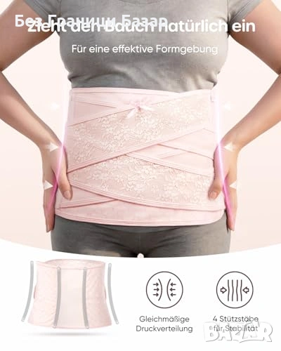 Следродилен колан с V-образна кръстосана опора за насочена поддръжка в центъра на корема