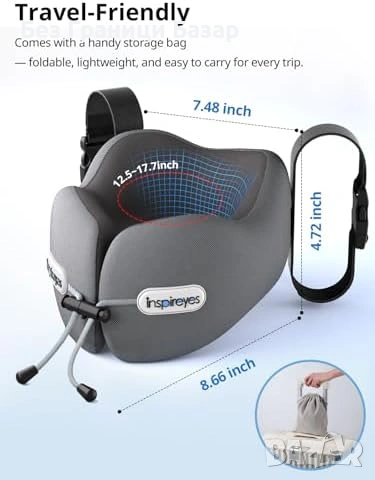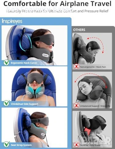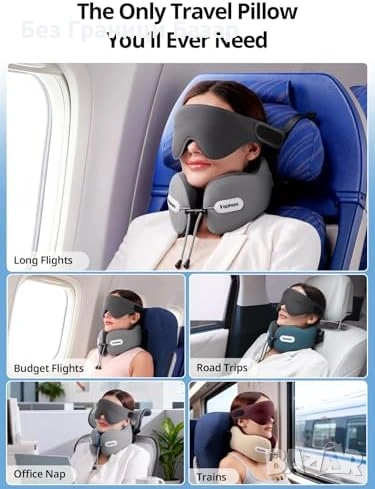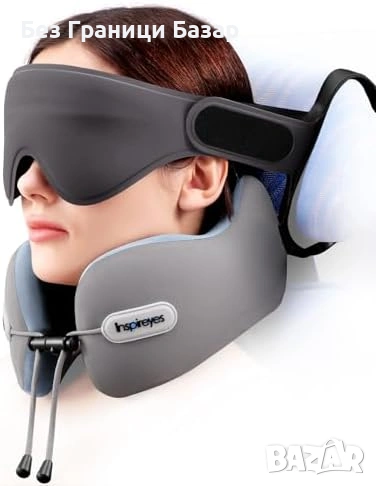 Нова Пътна възглавница за врат със седалков ремък + 3D маска - сива