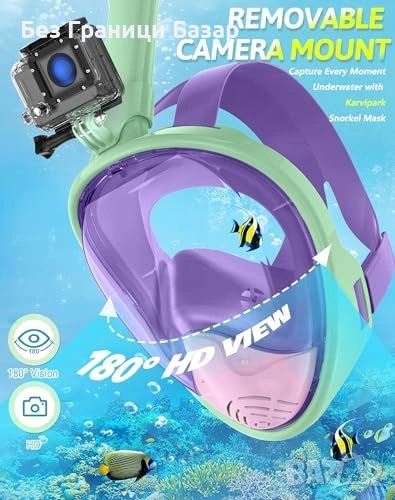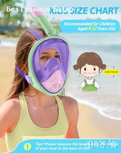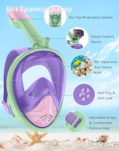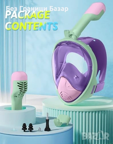 Цяла шнорхел маска за деца с 180° панорамна видимост и широк ъгъл