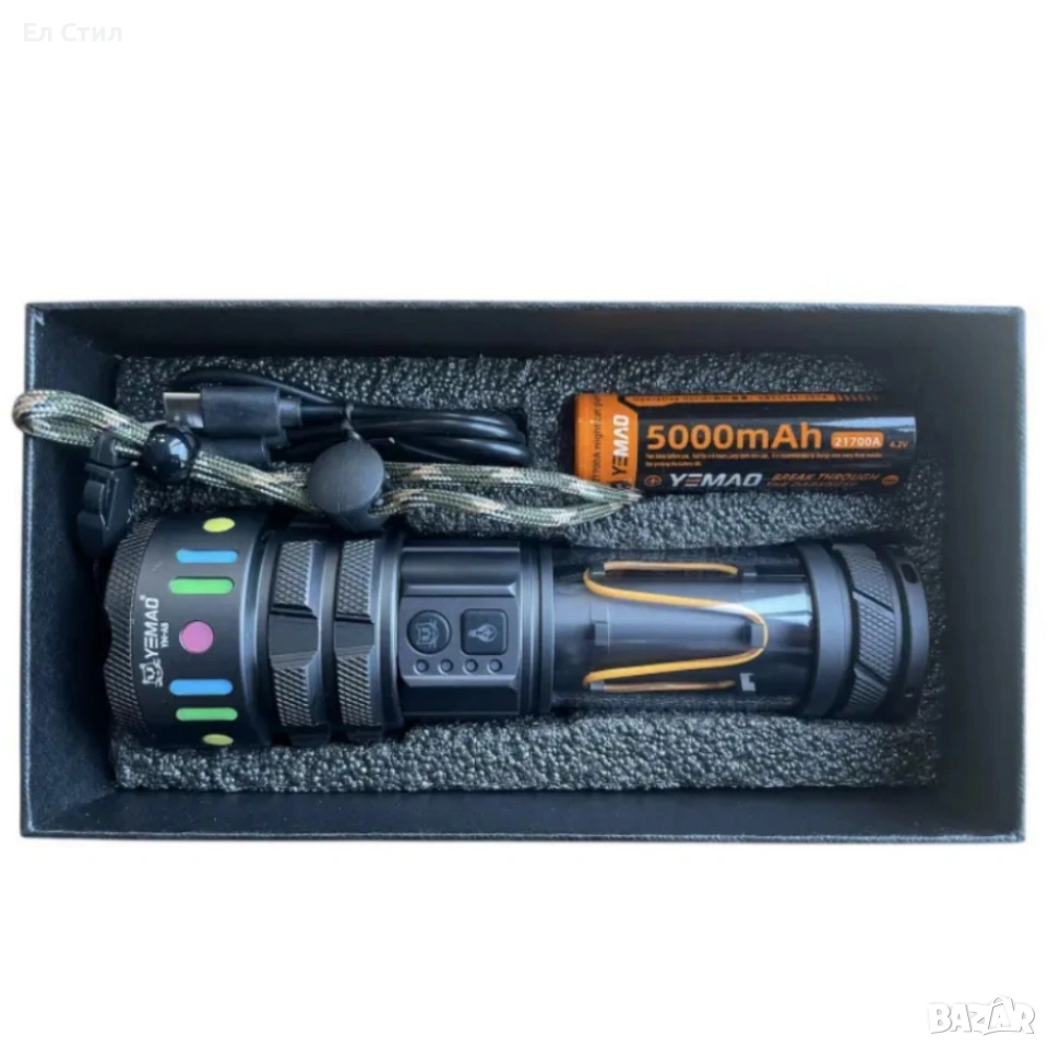 LED мощен фенер YEMAO YM-A5 – 3000 лумена, ZOOM и PowerBank