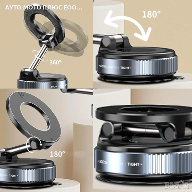 Магнитна стойка за телефон с вакуумно закрепване - въртене 360 градуса