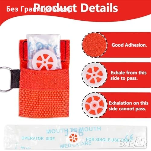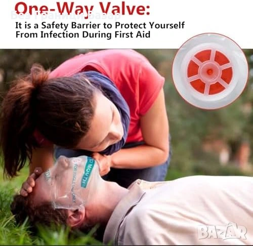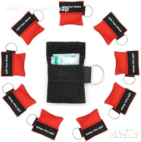 Нов Комплект 10 броя джобна маска за реанимация с еднопосочен клапан за обдишване с ключодържател