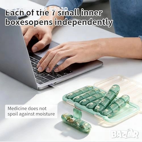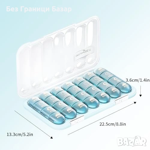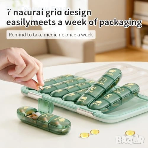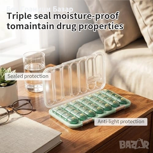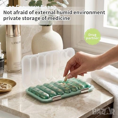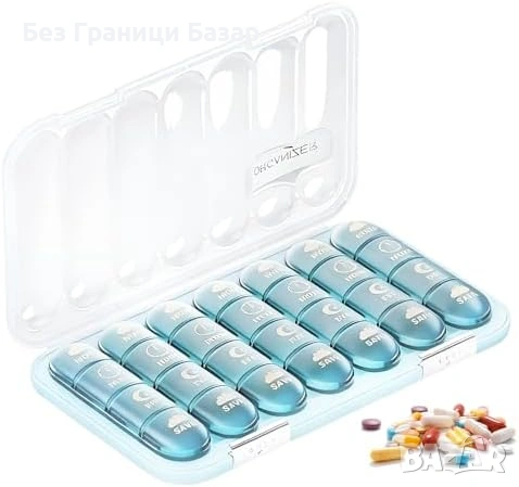 Нов Органайзер за лекарства 28 отделения 7 дни влагозащитен двойно заключване