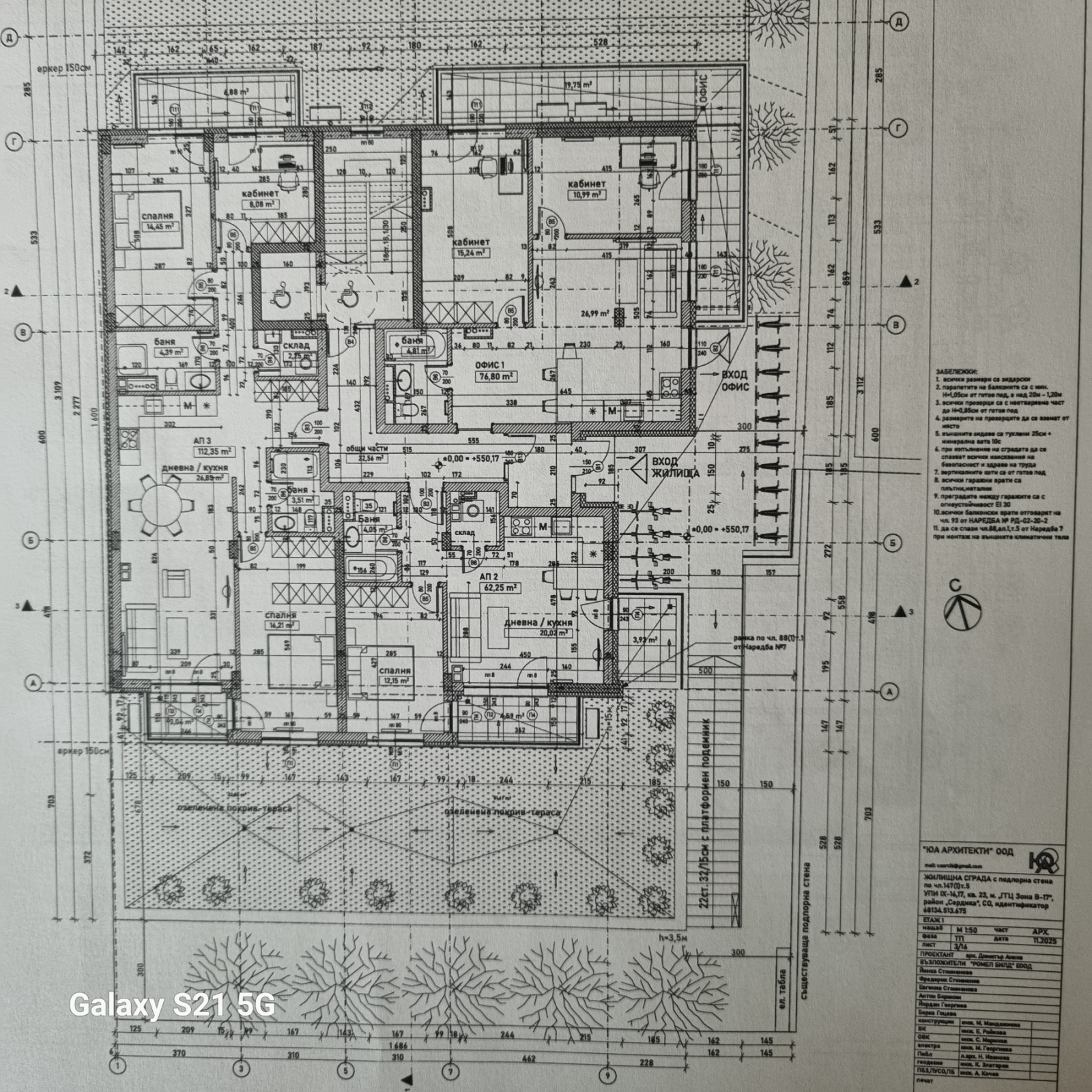 Предлагаме за продажба Градински Апартамент 3 на първи жилищен етаж ведно с прилежащ двор и право на ползване на покривна тераса над гаражи.