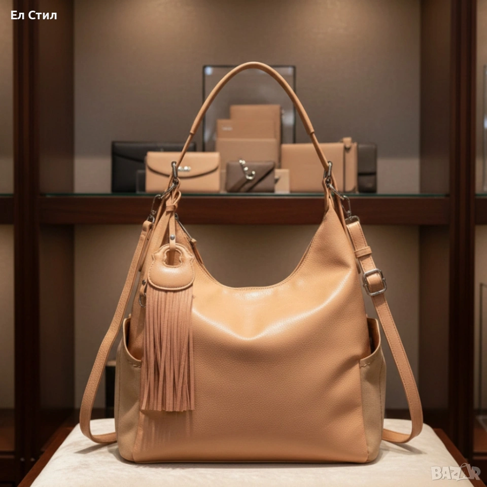 Дамска чанта с висулка и странични джобове в 7 цвята — стилна, вместителна и практична