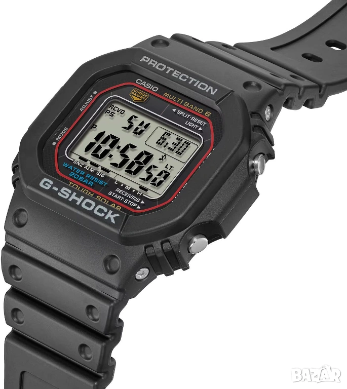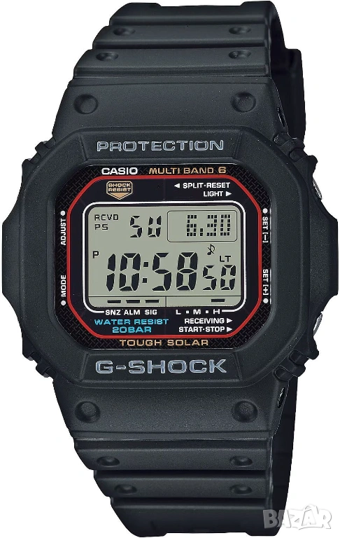 Мъжкият часовник Casio G-Shock GW-M5610U-1ER е изключително издръжлив и функционален дигитален часовник, част от легендарната G-Shock колекция. Моделът е създаден за екстремни условия и спортни дейности, благодарение на своята ударо-устойчива конструкция и водоустойчивост до 20 BAR (200 метра). Захранва се чрез Tough Solar технология, която преобразува светлината в енергия и осигурява дългосрочна работа без необходимост от чести смени на батерията.