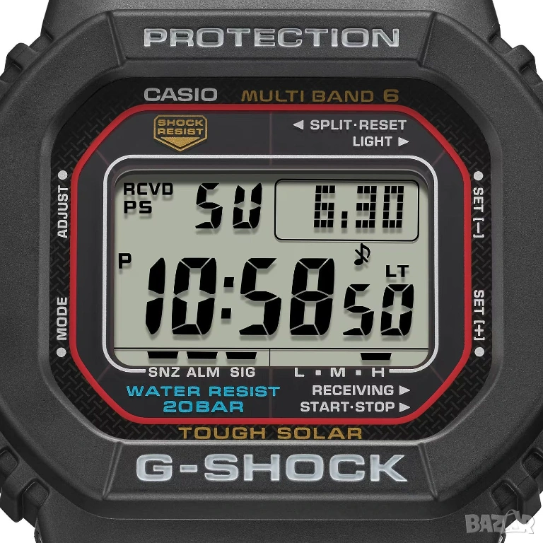 Часовникът разполага с Multi-Band 6 Atomic Timekeeping система, която автоматично получава радио сигнали от шест предавателни станции в Европа, САЩ, Япония и Китай, за да поддържа прецизно време. Дизайнът включва черна смолиста кутия и каишка, дигитален дисплей със сиво циферблат и пълна автоматична EL/LED подсветка. Минералното стъкло осигурява защита срещу надраскване, а функцията за икономия на енергия гарантира до 10 месеца работа при пълно зареждане.