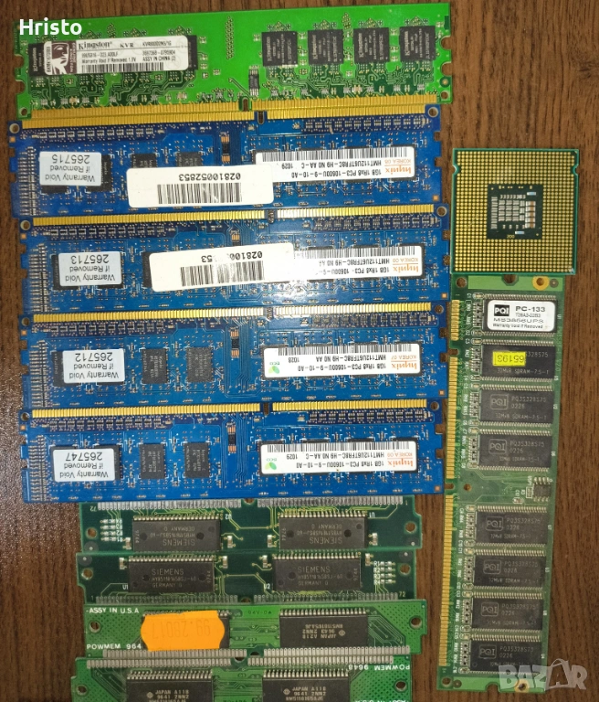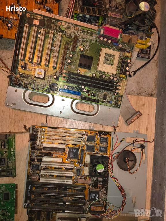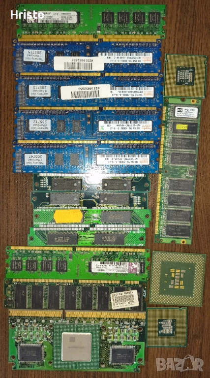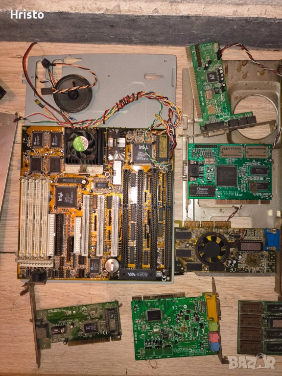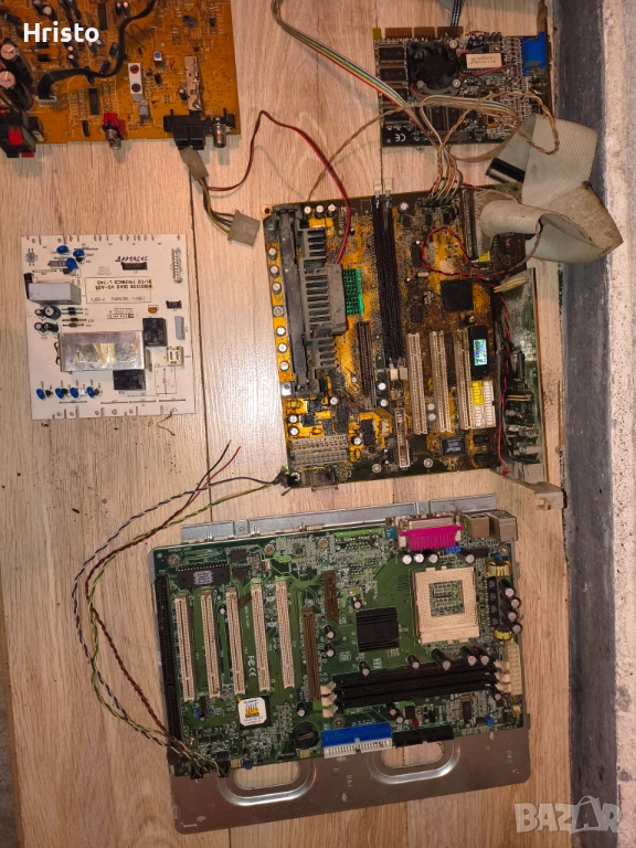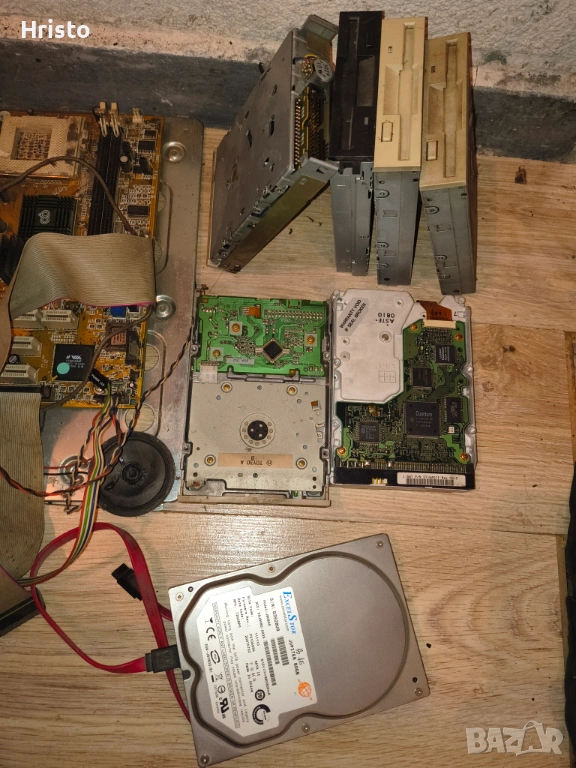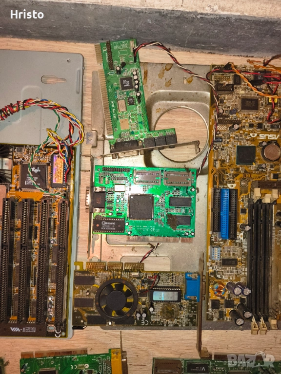 Дъна,рам,процесори,стари лан карти,флопи 6 броя , двд рв 5 броя записвачки,15 броя захранвания,имам и още 4,5 монитора с дефекти,4 компютъра все още сглобени с кутии и няколко лап топа.80% от нещата са работещи но са стари модели,другите са с дефекти има както стари така и нови неща.