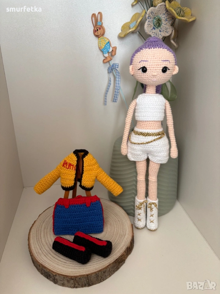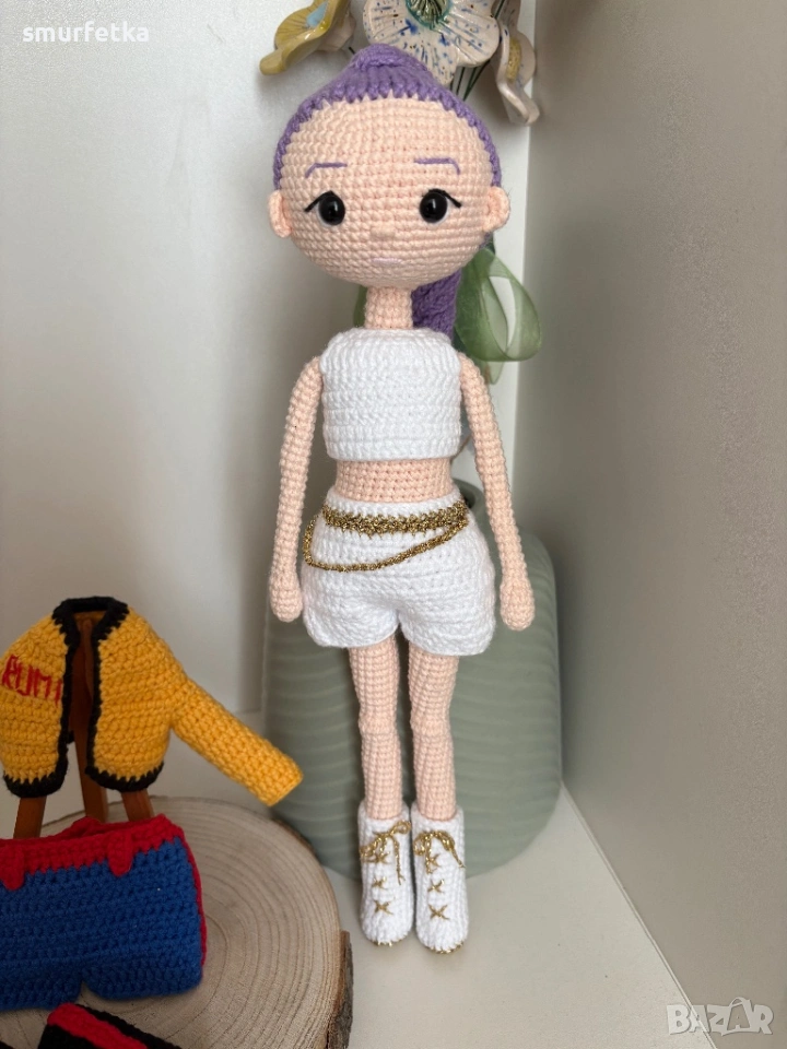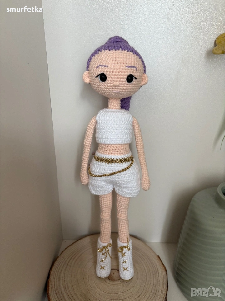 Ръчно плетена кукла, създадена с много любов и внимание към всеки детайл.