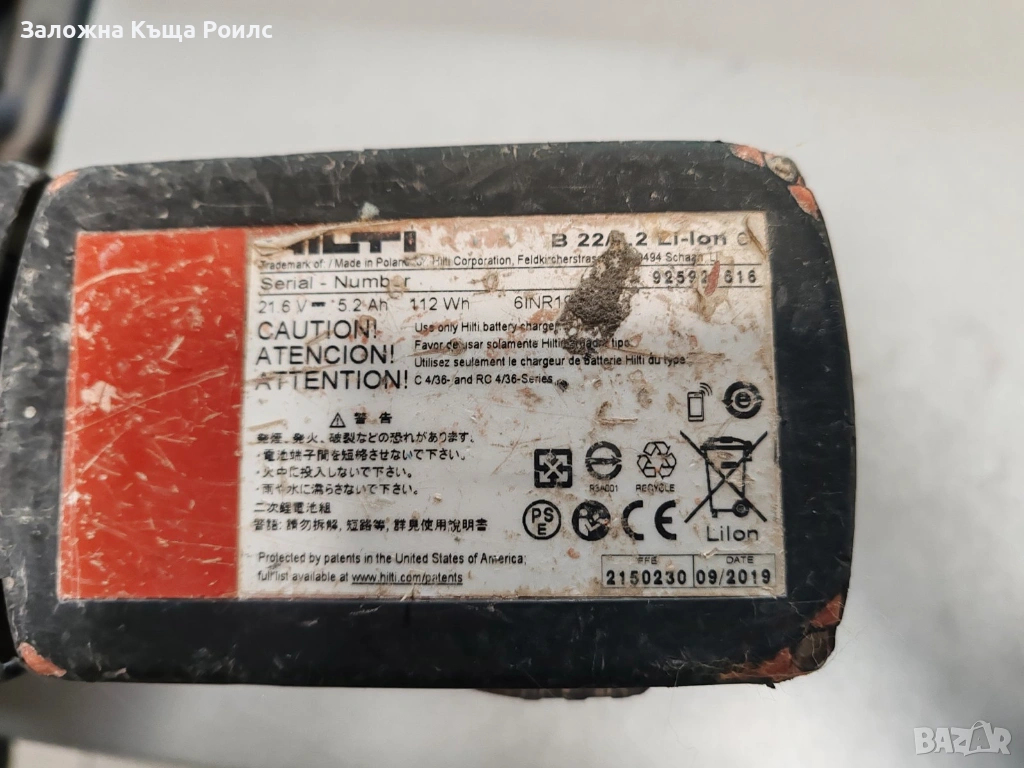 В комплект с батерия Hilti B 22/5.2.