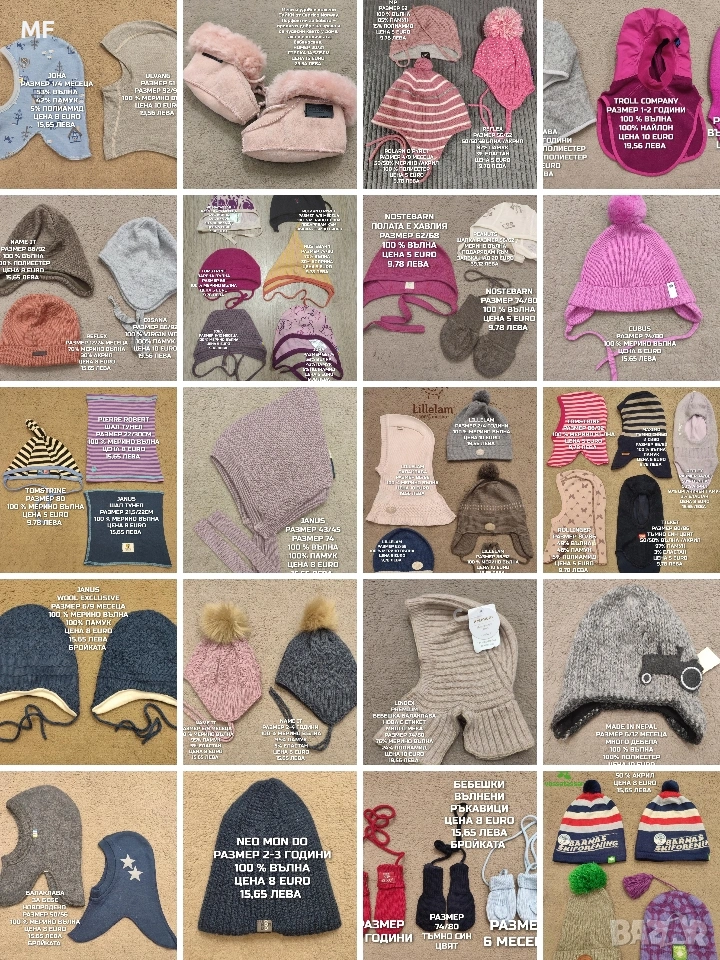 МЕРИНО ВЪЛНЕНИ ШАПКИ, ШАЛОВЕ И РЪКАВИЦИ ЗА БЕБЕТА → Обява 53567974