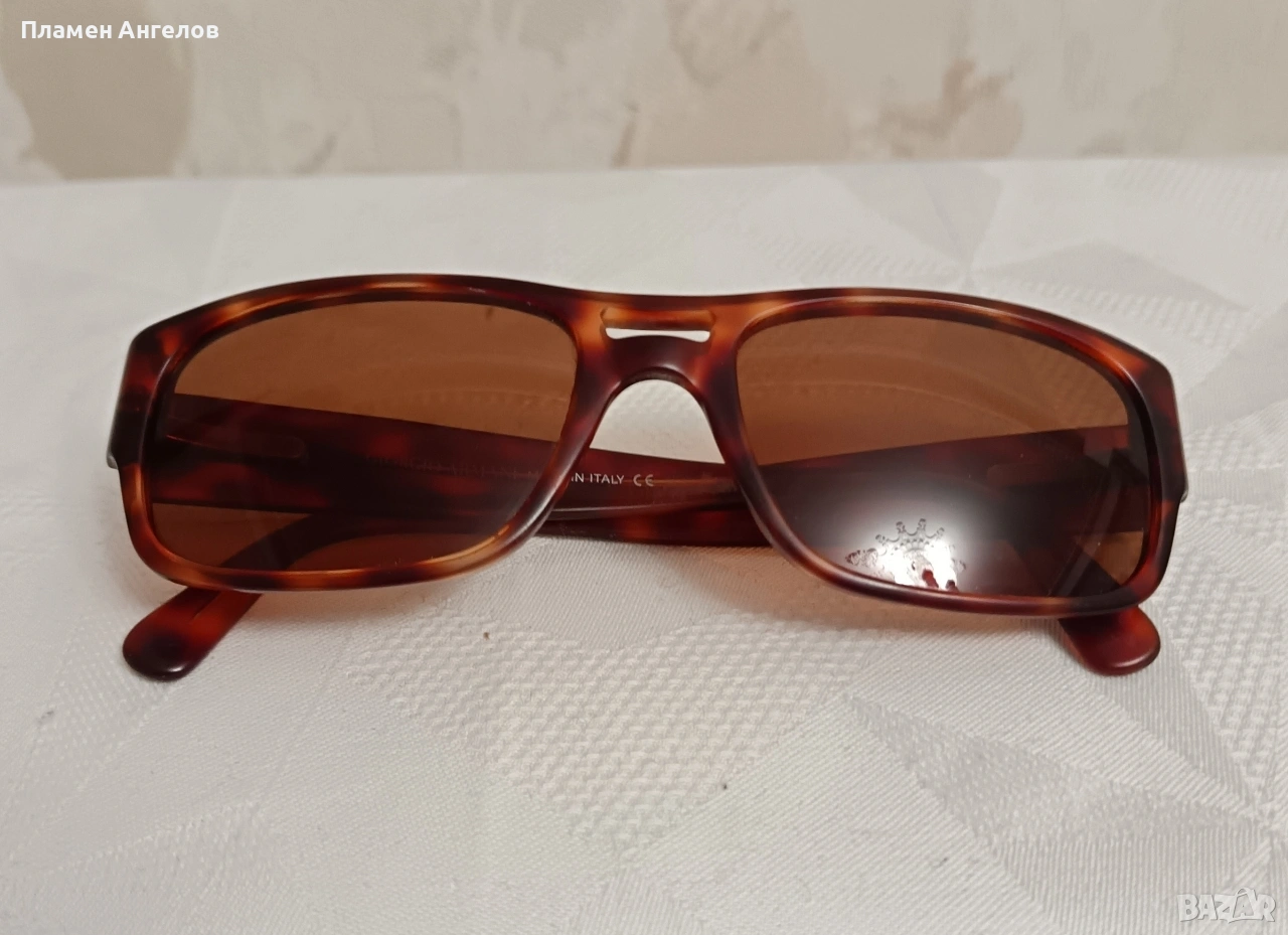 Винтидж слънчеви очила Giorgio Armani GA2519C - 065 /47. Блестящи костенуркови с пополязирани кафяви стъкла-100 %UV защита. Очилата са отлично запазени. Без повреди по рамката. Без драскотини, без износване, без протриване на стъклата. Калъфът на очилата е от друг марков производител.