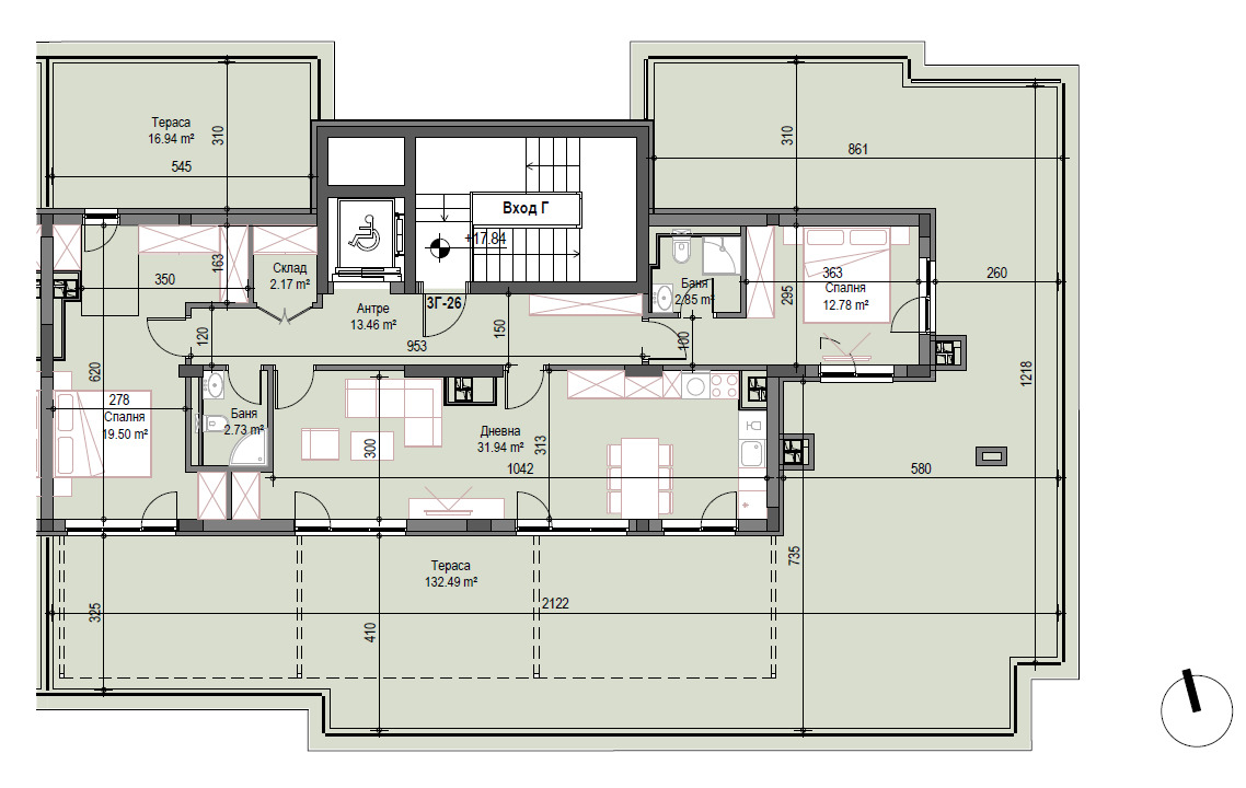 Инвеститорът 'Юнивърсъл' с дългогодишен опит на имотния пазар представя пaнорамен тристаен апартамент в модерен жилищен комплекс 'Железни врата', в квартал с изградена инженерна и социална инфраструктора. В близост училища и детски градини. Апартамент 3Г-26 се състои от просторна дневна с кухненски бокс, две спалня, две бани/wc,склад и тераса 174 м2. Изложение Юг/З/С. В комплекса има четири жилищни сгради с магазини и се постига благоприятна жизнена среда в богато озеленено пространство. Сградите се отличават със съвременна архитектура и луксозно изпълнени общи части и асансьор. Дограмата е пет камерна, най-висок клас с ниски енергийни разходи, предвидени са разводки за климатици във всички помещения, видео-домофона уредба за контролиран достъп, окабеляване за интернет, блиндирана входна врата. Предлагаме паркоместа и гаражи в сутерена под сградите. Удобна локация между метростанции Театрална и Хаджи Димитър , с бърз автомобилен достъп до центъра и Околовръстен път. Осигурено кредитиране. Цената е окончателна без индексации. Повече имоти на www.universal-bg.com