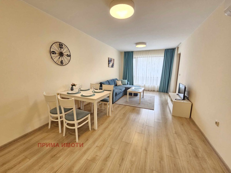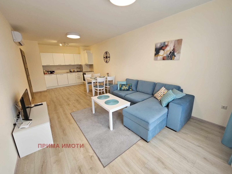 ПРИМА ИМОТИ ОТДАВА ПОД НАЕМ ДЪЛГОСРОЧНО ЛУКСОЗЕН АПАРТАМЕНТ , който се намира в затворен комплекс-Varna South Bay Beach Residence с прекрасна морска панорама на метри от плажната ивица. Разполага също със спалня, всекидневна с разтегателен диван+напълно оборудвана кухня - фурна с котлони, хладилник, пералня, два климатика, кафемашина, смарт телевизор. Имота е обзаведен и оборудван с всичко необходимо за едно домакинство Пред комплекса има безплатен паркинг, а на 50м има автобусна спирка, на която спират автобуси, които минават през квартала и водят до центъра на града. Освен хранителен магазин на няколко крачки(в съседната сграда на партер) има и Lidl на 900 метра от комплекса. Наемната цена е 550eвро/месец с включени разходи за общи части и асансьор , като в деня на настаняването се дължи депозит в размер на един месечен наем.Включени в цената интернет и телевизия. Без домашни любимци. ОТДАВА СЕ ДЪЛОСРОЧНО. ВЪЗМОЖНОСТ ЗА НАЕМАНЕ НА ПОКРИТО ПАРКОМЯСТО НА ЦЕНА ОТ 75 ЕВРО/месец.