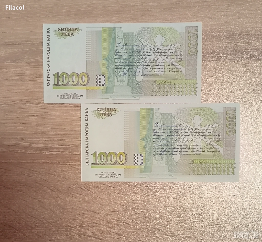 Лот банкноти 1000 лева 1994 и 1997 година UNC → Обява 53568145