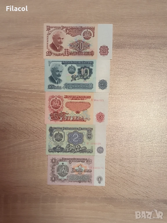 Пълен Лот банкноти 1974 година - от 1 до 20 лева UNC, снимка 1 - Нумизматика и бонистика - 53568156 Пълен Лот банкноти 1974 година - от 1 до 20 лева UNC, снимка 2 - Нумизматика и бонистика - 53568156 1/2