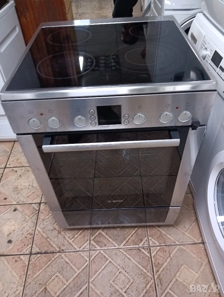 Иноксова свободно стояща печка с керамичен плот Бош Bosch с две години гаранция!