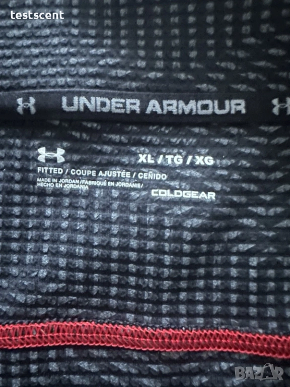 Материята е лека и дишаща, осигурява комфорт по време на тренировки. Логото на Under Armour е в червено отпред.
