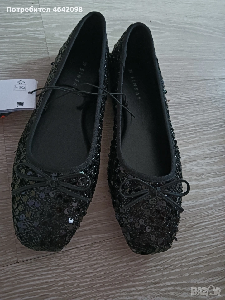 Обувки черни с пайети. Нови с етикет. По етикет са 39 номер. Но стават и за 40, защото са леко разтегливи.