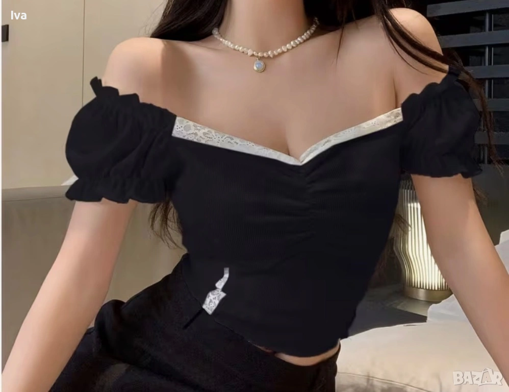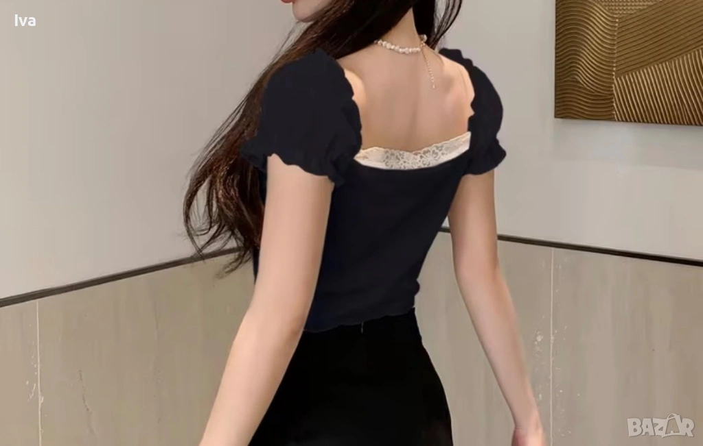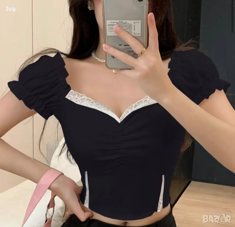 Ефектен дамски топ с дантелен акцент – модел, който подчертава силуета → Обява 53568398