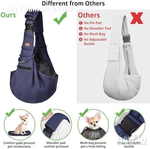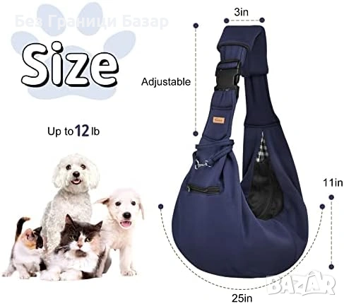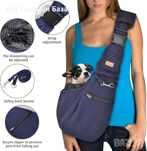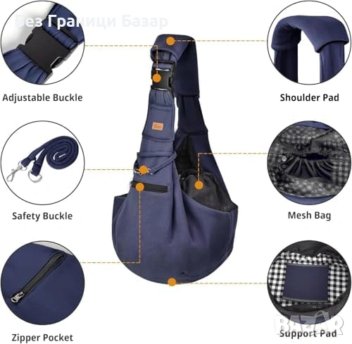 Нова CUBY слинг чанта за куче/котка до 6 кг, регулируема, джоб, колан