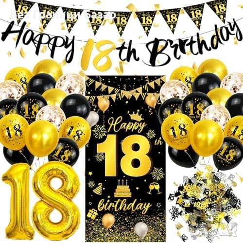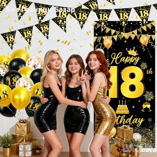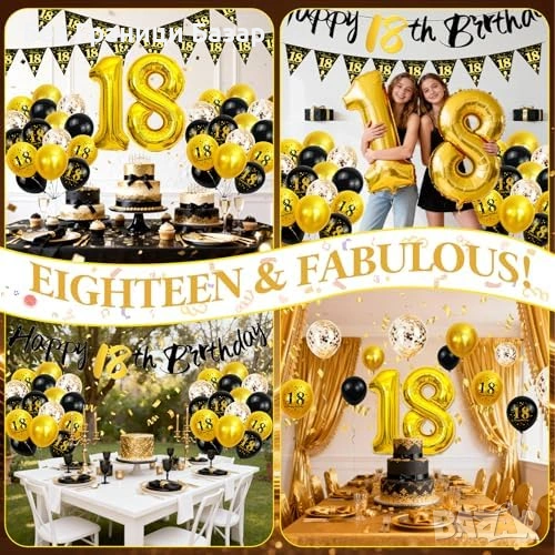 Комплект украса за 18-ти рожден ден в черно и злато