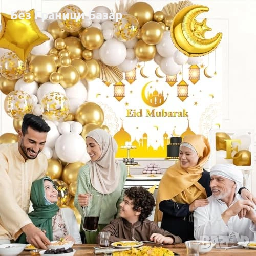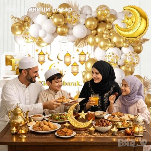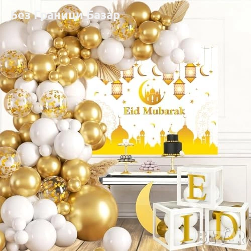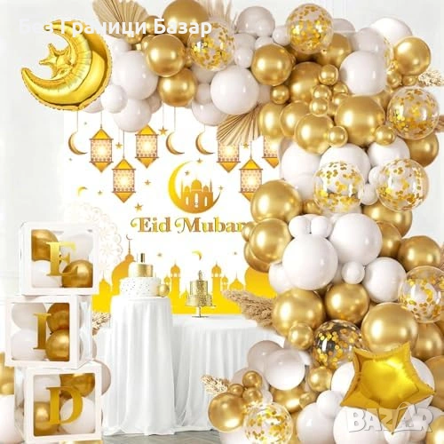 Комплект декорация Eid Mubarak / Ramadan – 107 части в бяло и злато
