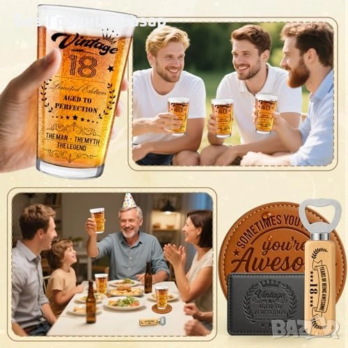 Подаръчен комплект за 18-ти рожден ден с винтидж визия и тематичен надпис