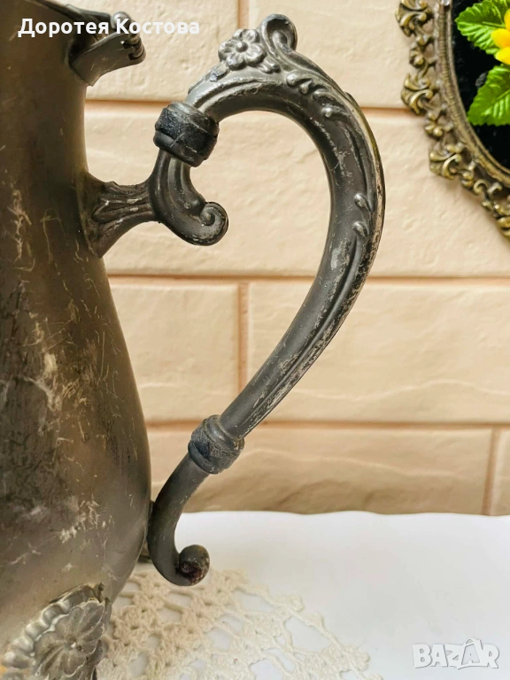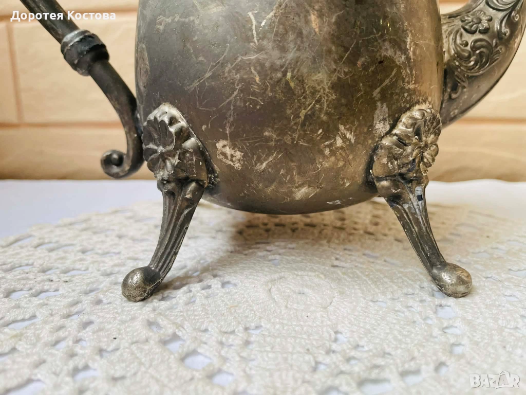 Красив посребрен чайник от Англия с цветя → Обява 53568595