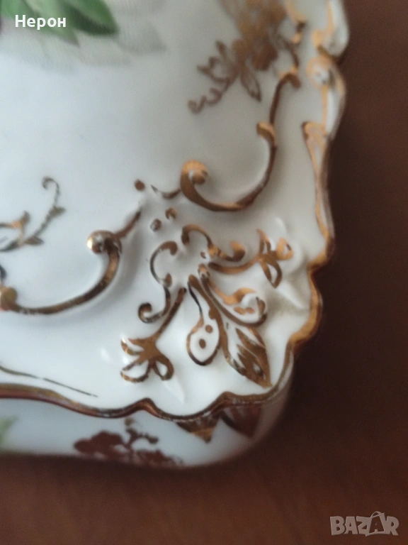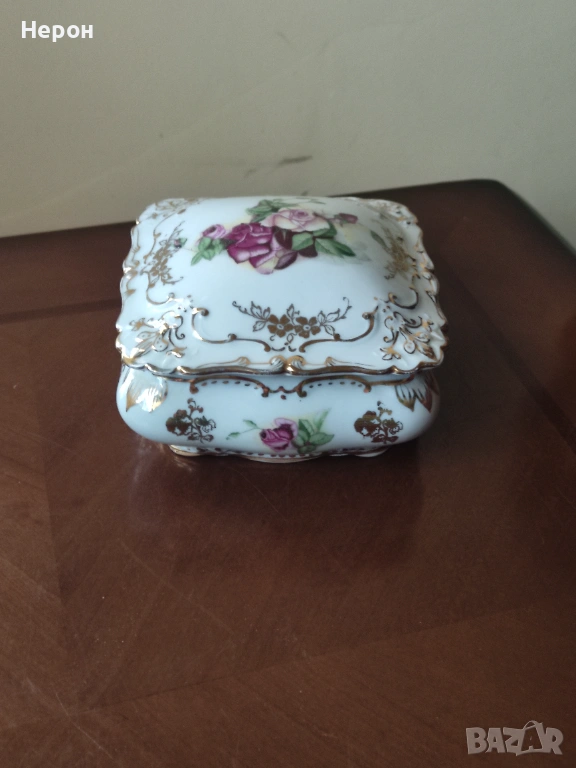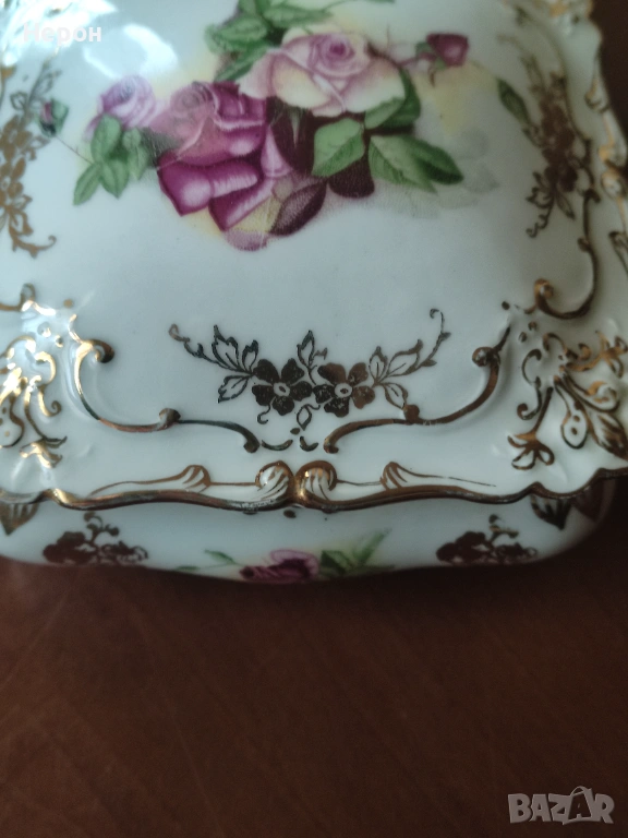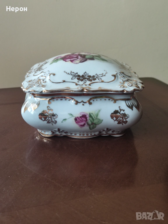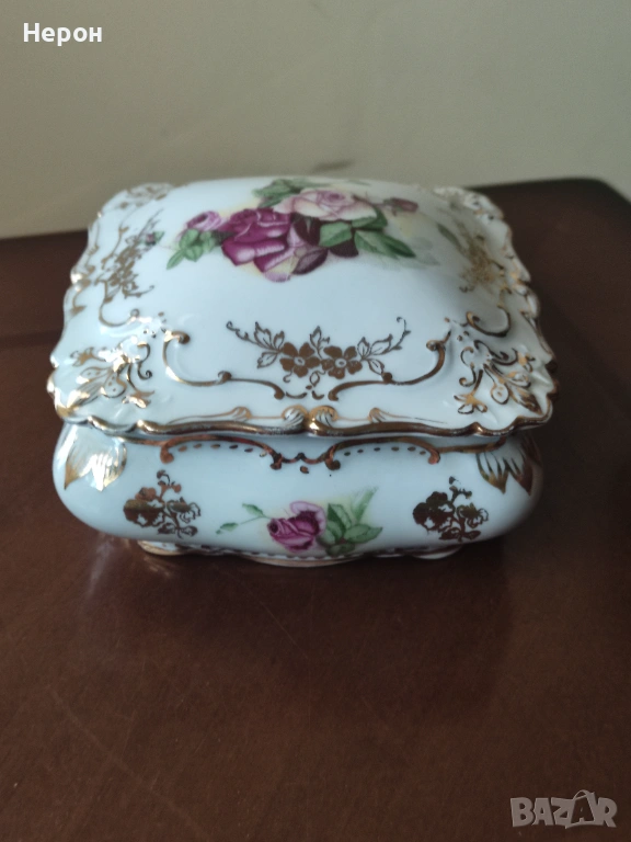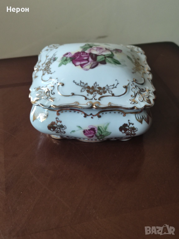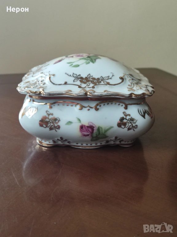 Много красива винтидж кутия за бижута с декор на рози, барокови елементи и много позлата, маркирана , забележка отвътре на капачето, произход -Франция , около 1937-47 година,