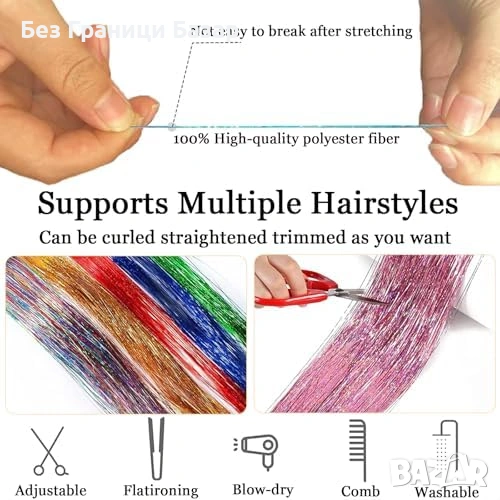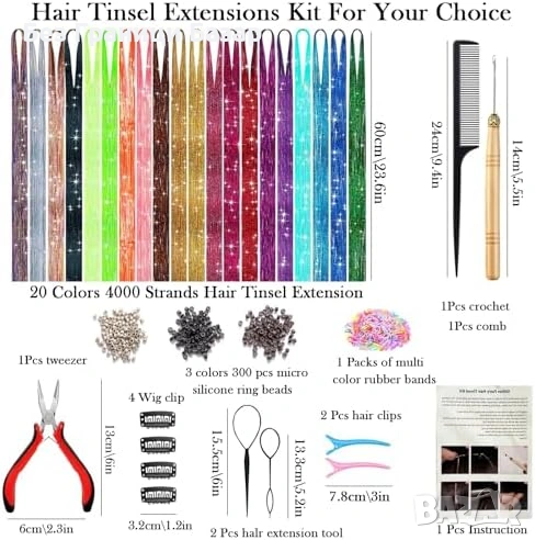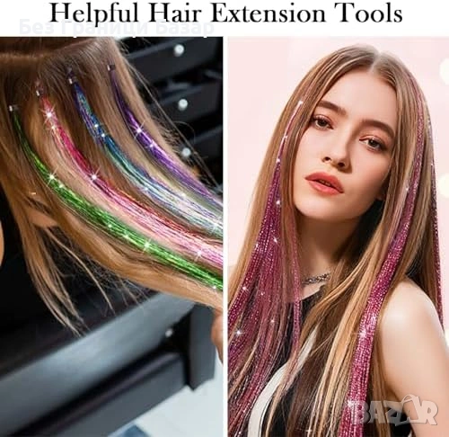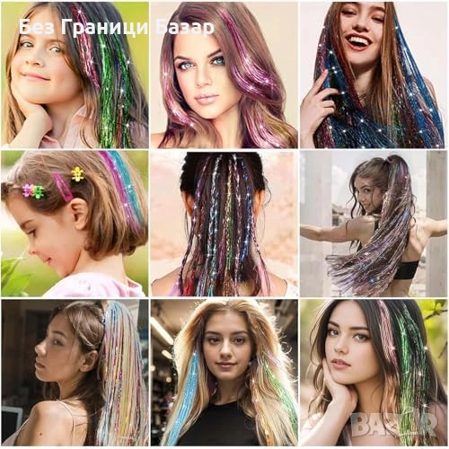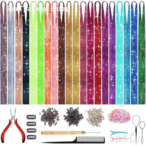 Комплект тънсъл кичури за коса в 20 ярки цвята за ефект „блясък“ и акценти