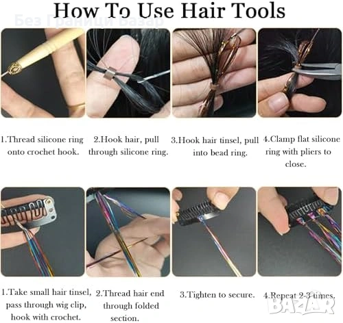 Включени инструменти и аксесоари: кука за поставяне, клещи, мъниста, ластици, щипки за разделяне