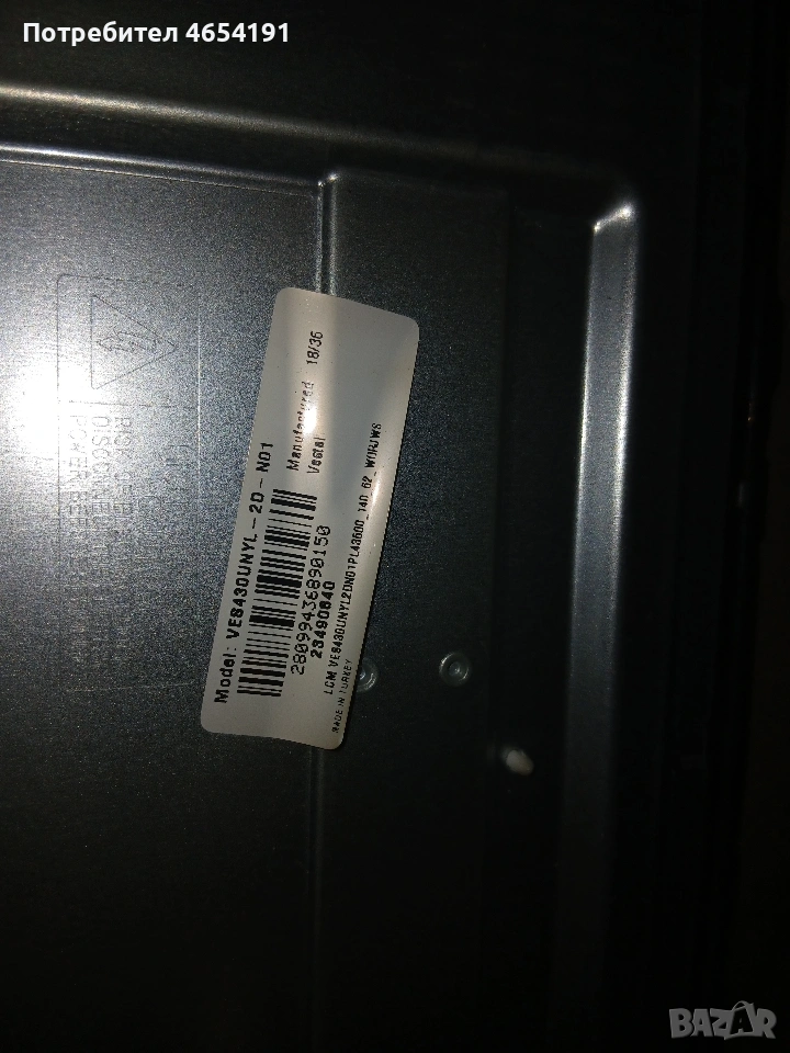 панел ves430unyl-2d-n01 счупен