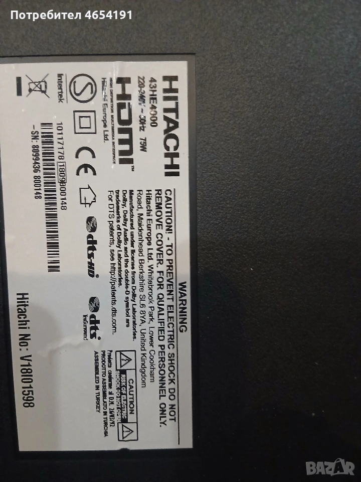 Телевизор Hitachi 43he4000 на части → Обява 53568802