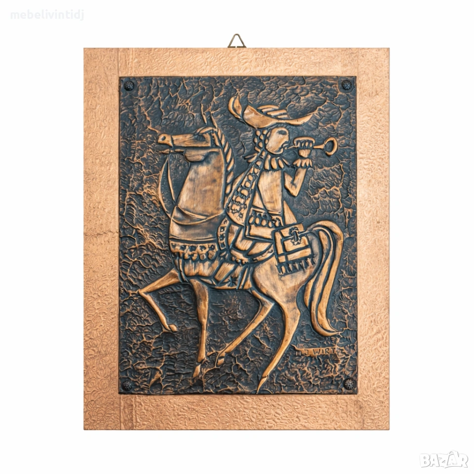 ✅Декоративно пано с релефна фигура на конник с тромпет – стилна арт изработка с винтидж визия
