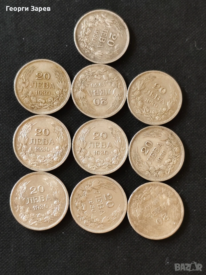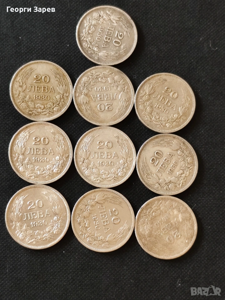Сребърни монети,10 бр.по 20 лева 1930 год., сребро 40.00 гр, проба 500/1000, снимка 1 - Нумизматика и бонистика - 53568862 Сребърни монети,10 бр.по 20 лева 1930 год., сребро 40.00 гр, проба 500/1000, снимка 2 - Нумизматика и бонистика - 53568862 Сребърни монети,10 бр.по 20 лева 1930 год., сребро 40.00 гр, проба 500/1000, снимка 3 - Нумизматика и бонистика - 53568862 Сребърни монети,10 бр.по 20 лева 1930 год., сребро 40.00 гр, проба 500/1000, снимка 4 - Нумизматика и бонистика - 53568862 1/4