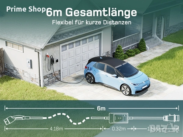 * Обща дължина от 6 метра, осигуряваща лесен достъп до зарядния порт на автомобила при различни условия на паркиране.